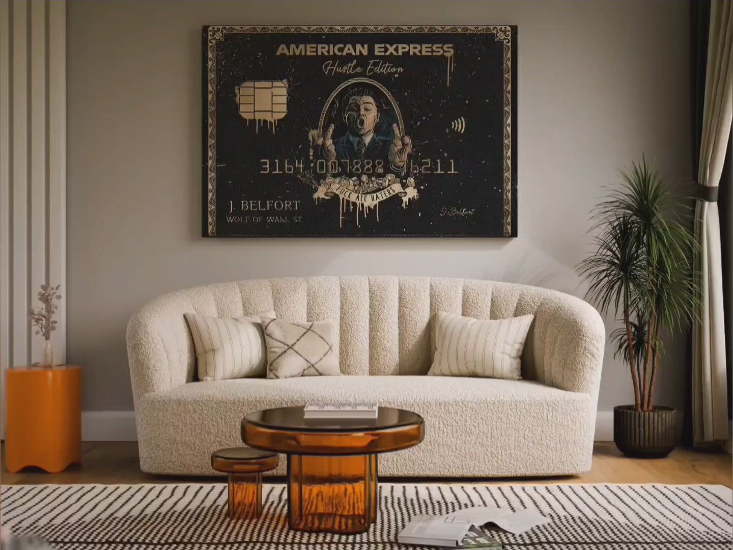 - Design moderno e sofisticato con arte ispirata ad American Express e decorazioni di lusso.